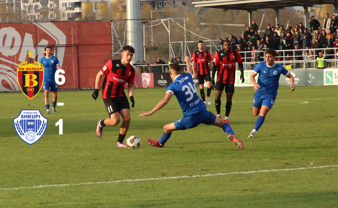 Резултати 1ПМФЛ 15 коло; Вардар - Шкупи 6:1, Струга ТЛ - Башкими 6:0, Брера С - Тиквеш 0:4, Пелистер - Македонија ЃП 1:1, Силекс - Арсими 1:3, Шкендија - Работнички 1:0.