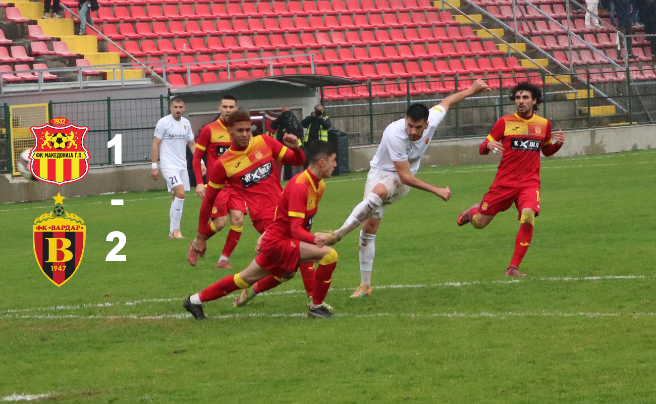 Резултати 1ПМФЛ 16 коло; Македонија ЃП - Вардар 1:2, Тиквеш - Струга ТЛ 0:1, Башкими - Шкендија, Шкупи - Брера С, Работнички - Силекс, Арсими - Пелистер.